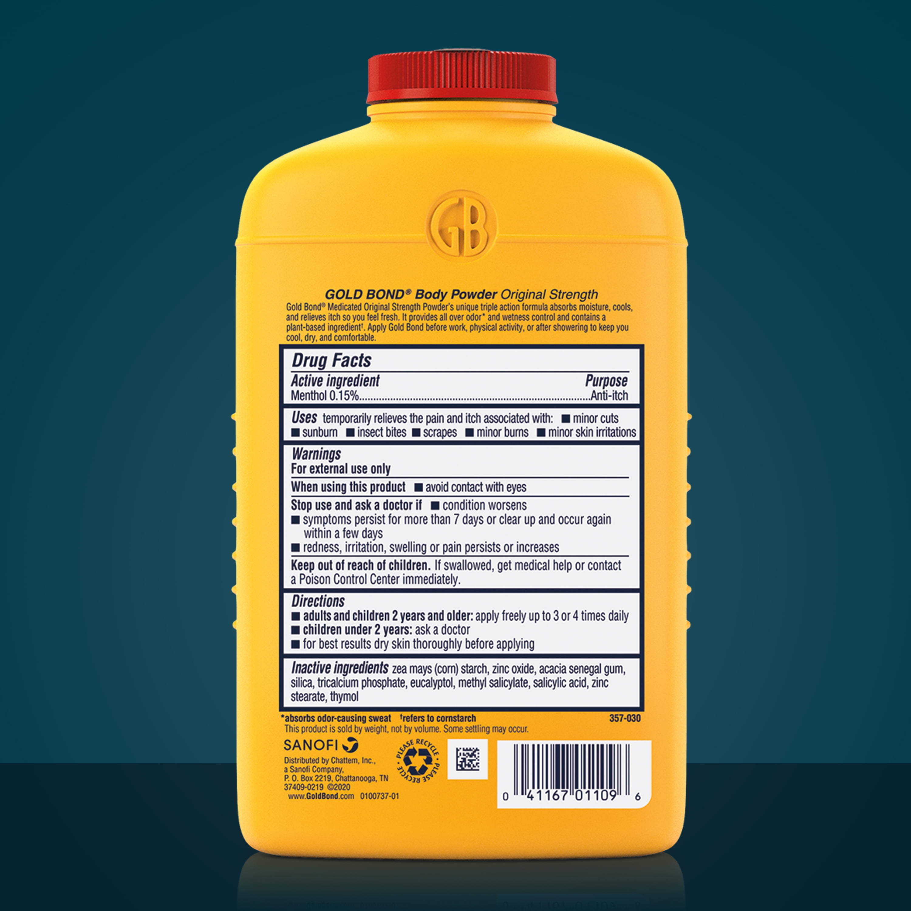 Gold bond® medicated cornstarch plus baby powder protects against chafing, diaper rash, and other minor skin irritations to keep your baby cool, dry, and happy. But if no one's looking and you want to soothe some of your own chafing , we won't tell if you won't. Most notably are the ingredients. After shower, bath or exercise, simply apply gold bond medicated extra strength body powder for lasting deodorant protection and that cool, refreshing feeling. In addition to its triple action relief, gold bond can also soothe the pain and itching associated with minor cuts, scrapes, burns, skin irritation, sunburn. One of the best ingredients of gold bond medicated extra strength powder is menthol 0.8%. One that never settles for silver. Aside from being a main ingredient in gold bond, zinc oxide is commonly found in calamine lotion, food packaging, oral care products, baby powder, dandruff shampoos, and sunscreen. Gold bond medicated foot powder unique triple action formula provides maximum strength itch relief while absorbing moisture, controlling foot odor and soothing irritated skin. Hazards identification this is a otc drug product for topical use. Temporarily relieves the pain and itch of minor skin irritations. Gold bond medicated extra strength powder, multi, 10 oz. While gold bond medicated powder contains both menthol and zinc oxide, gold bond medicated foot powder contains only menthol as its active ingredient.