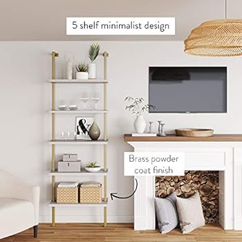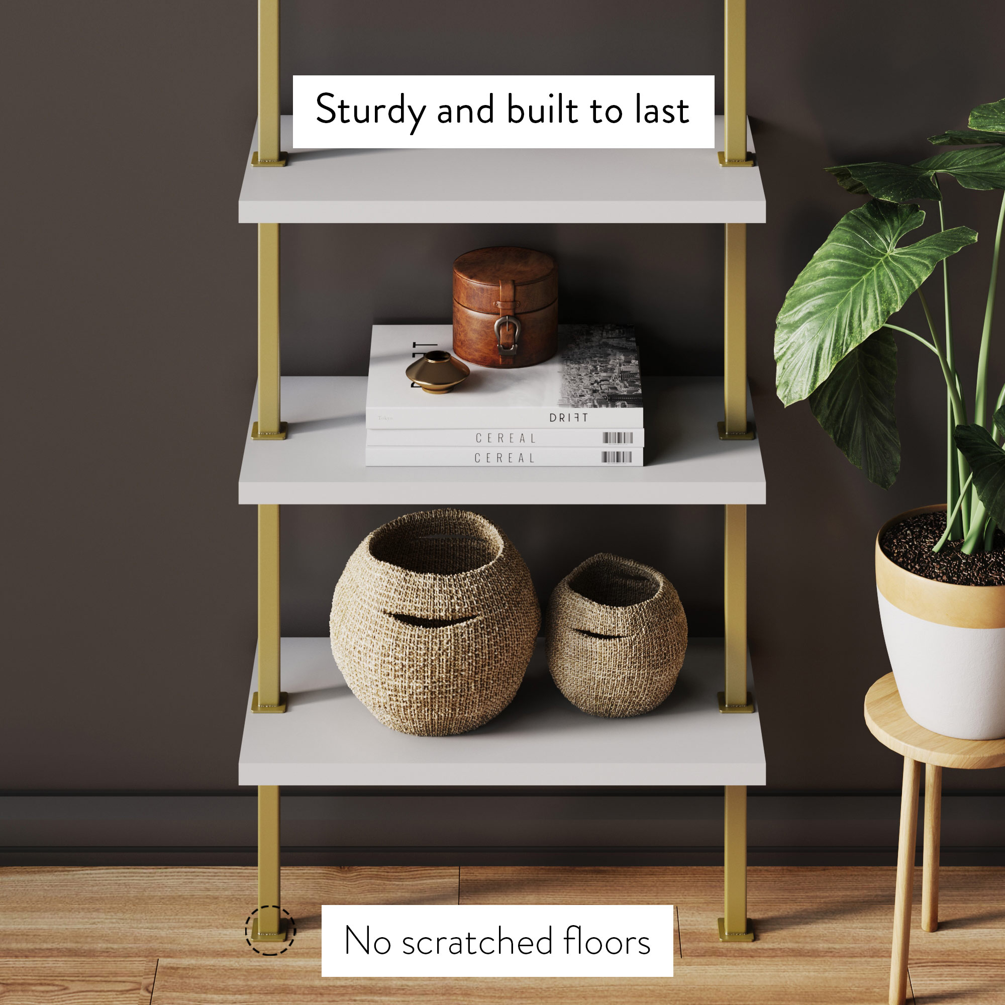 Gold Ladder Bookshelf / Nathan James Theo 85 In White Gold Brass Reclaimed Wood 6 Shelf Tall Ladder Bookshelf Wall Mount Bookcase With Metal Frame 66101 The Home Depot