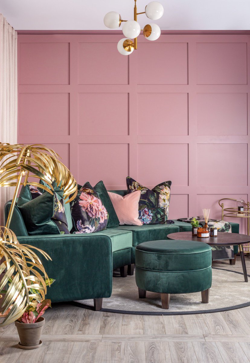 The gold metallic was used on quite a few pieces in this room. Living room colors don't need to be bright or bold to make a big impact in a space. I actually use it for more than just painting. Danish design from design by us available in pink/gold, amber/gold, purple/gold. The blush tufted sofa, walls and silk the lamp is only for direct wall mounted / outlet aka no cord included.